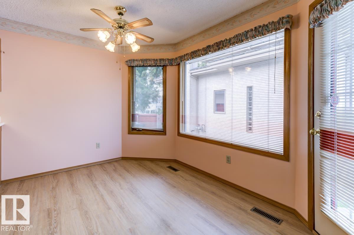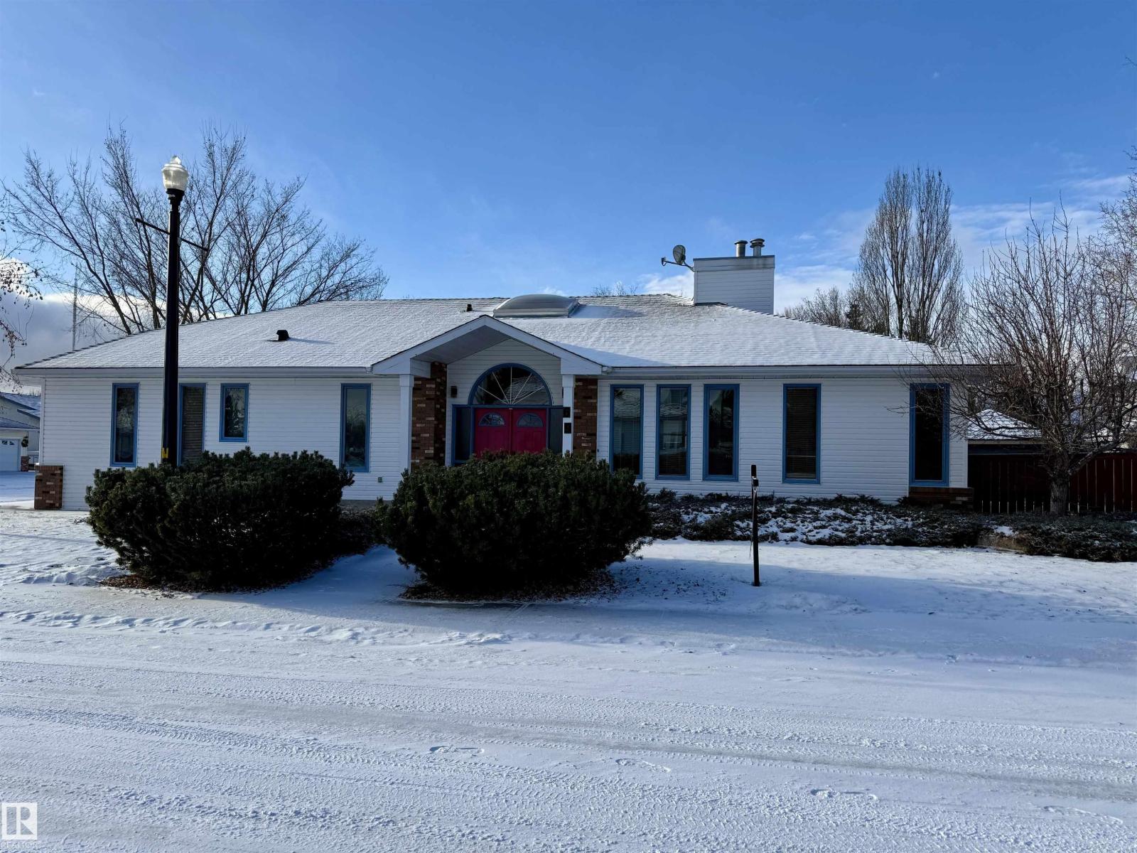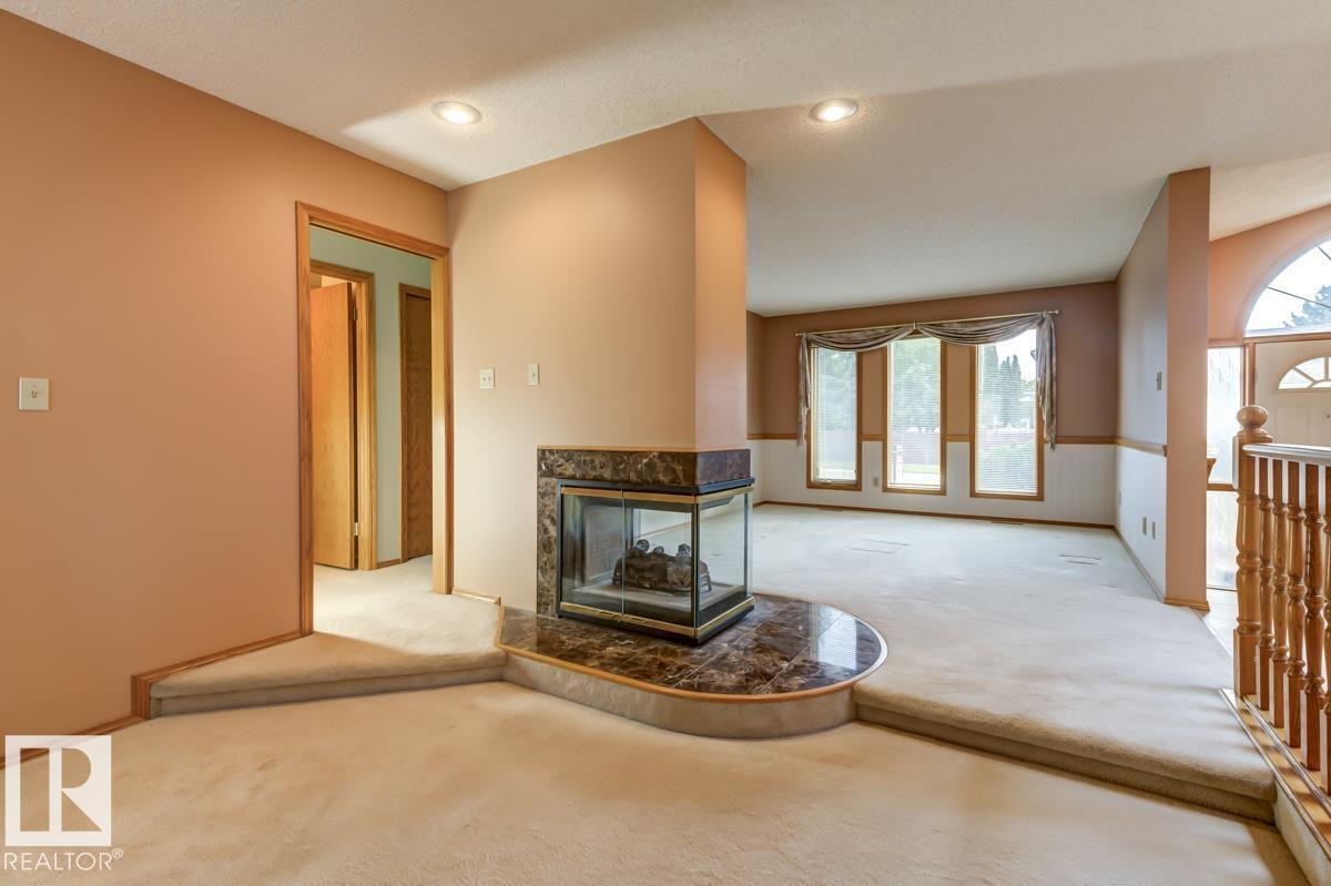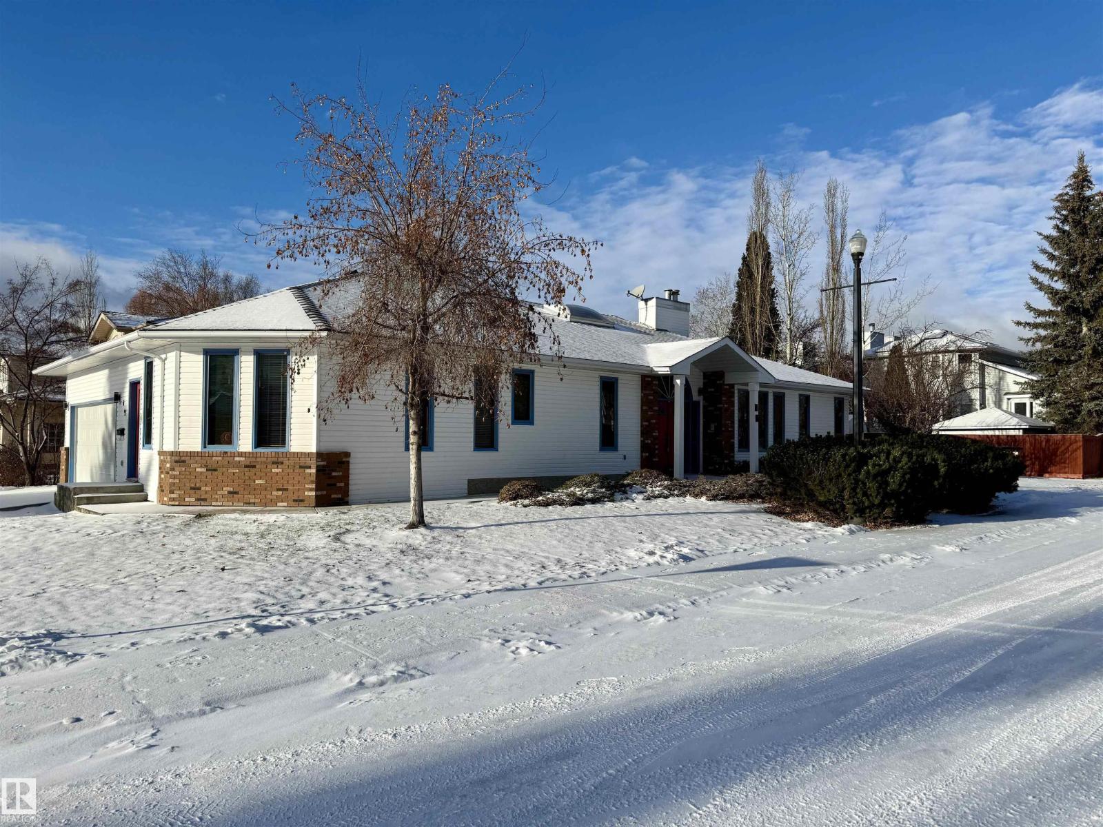 Welcome to this massive bungalow just steps from Nottingham Park, nestled in a quiet Sherwood Park cul-de-sac. Beautifully maintained by the original owner, this spacious home offers 2,200 sq ft on the main level, with 3 large bedrooms and 3 full bathrooms. The great room features both a living and family area anchored by a stunning 3-sided gas fireplace, perfect for entertaining. A skylight above the dining room fills the home with natural light, while the kitchen and breakfast nook have seamless access to the west-facing deck—ideal for outdoor dinners and evening relaxation. The main floor also includes a generous office with private exterior access, perfect for a home-based business or multi-generational living. The partly finished basement boasts a double rec room with a wet bar—ideal for a home gym, theatre, AND games room—plus an unfinished area for a workshop, storage, and mechanicals. With a double attached garage and a fully landscaped yard with mature trees and shrubs, this home is a rare find. (id:6365)