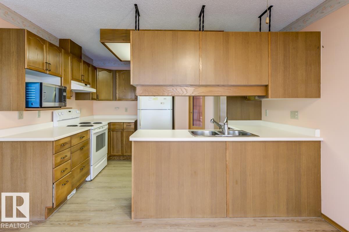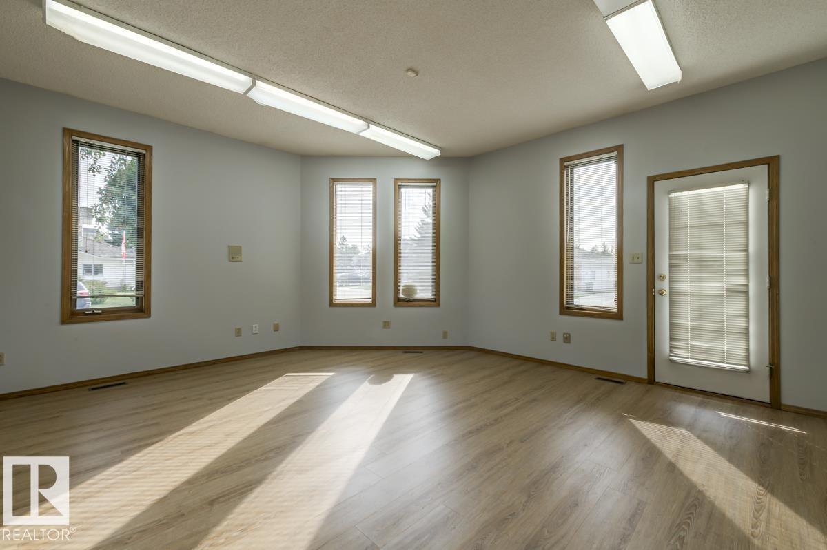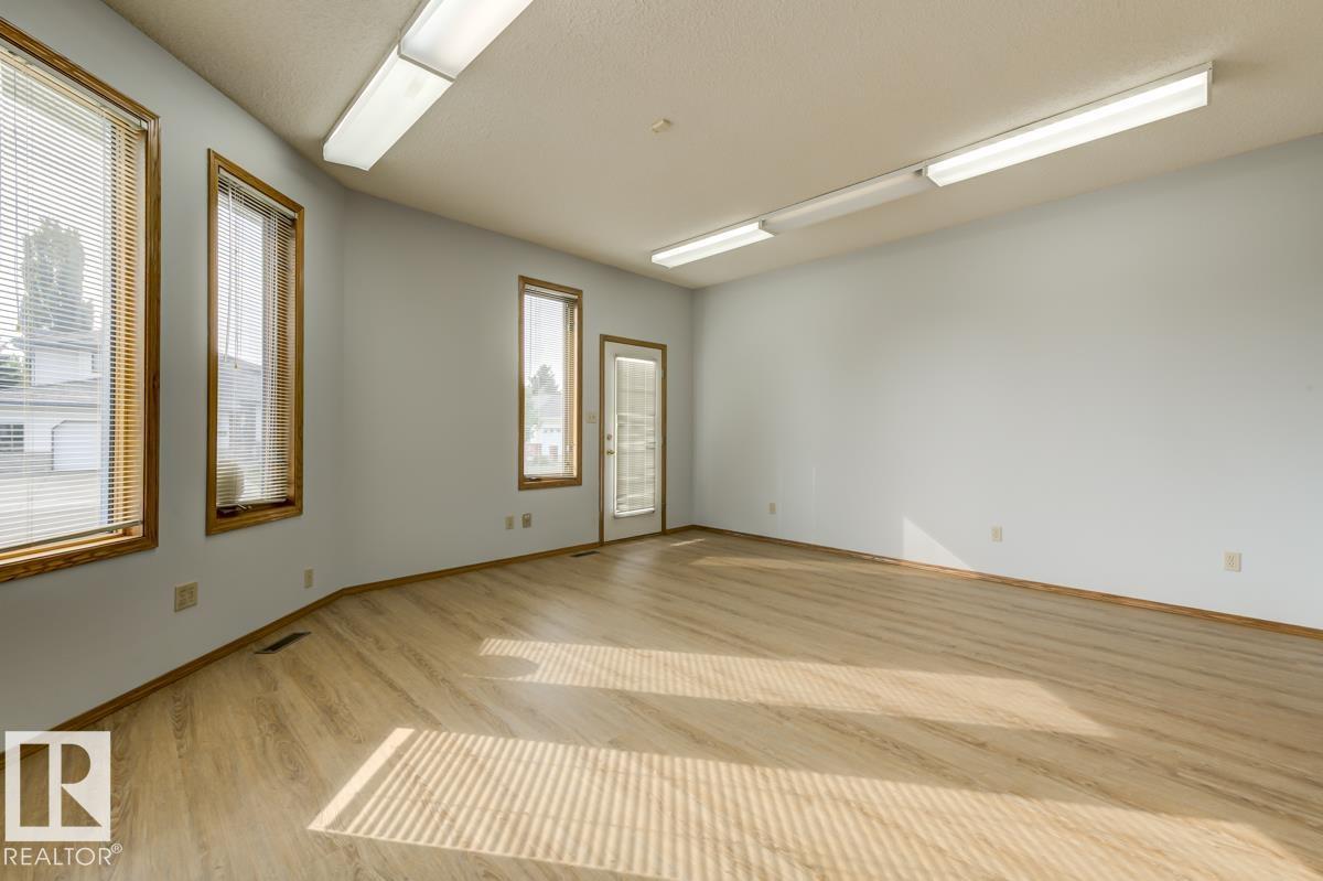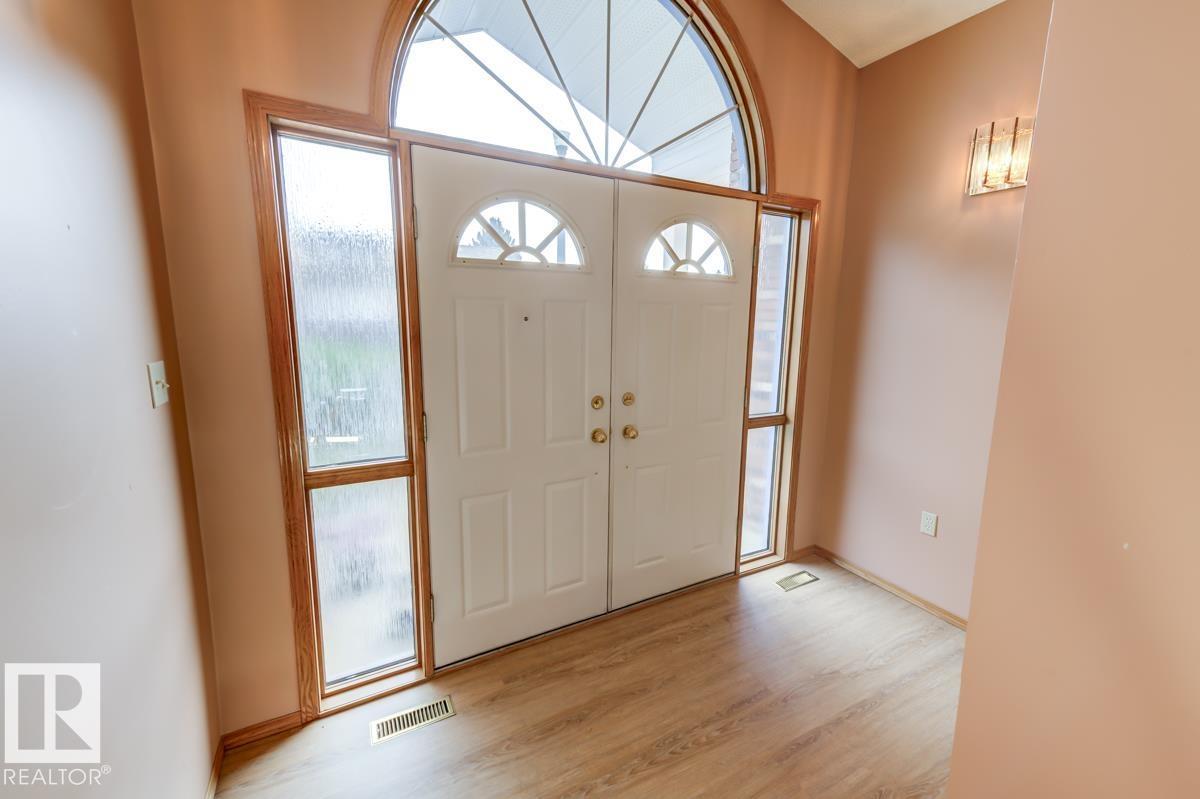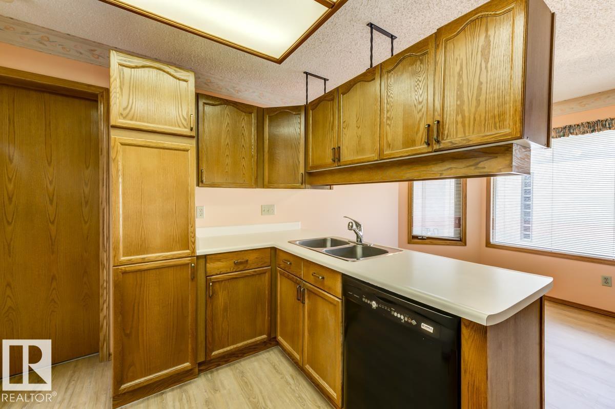 Welcome to this massive bungalow just steps from Nottingham Park, nestled in a quiet Sherwood Park cul-de-sac. Beautifully maintained by the original owner, this spacious home offers 2,200 sq ft on the main level, with 3 large bedrooms and 3 full bathrooms. The great room features both a living and family area anchored by a stunning 3-sided gas fireplace, perfect for entertaining. A skylight above the dining room fills the home with natural light, while the kitchen and breakfast nook have seamless access to the west-facing deck—ideal for outdoor dinners and evening relaxation. The main floor also includes a generous office with private exterior access, perfect for a home-based business or multi-generational living. The partly finished basement boasts a double rec room with a wet bar—ideal for a home gym, theatre, AND games room—plus an unfinished area for a workshop, storage, and mechanicals. With a double attached garage and a fully landscaped yard with mature trees and shrubs, this home is a rare find. (id:6365)