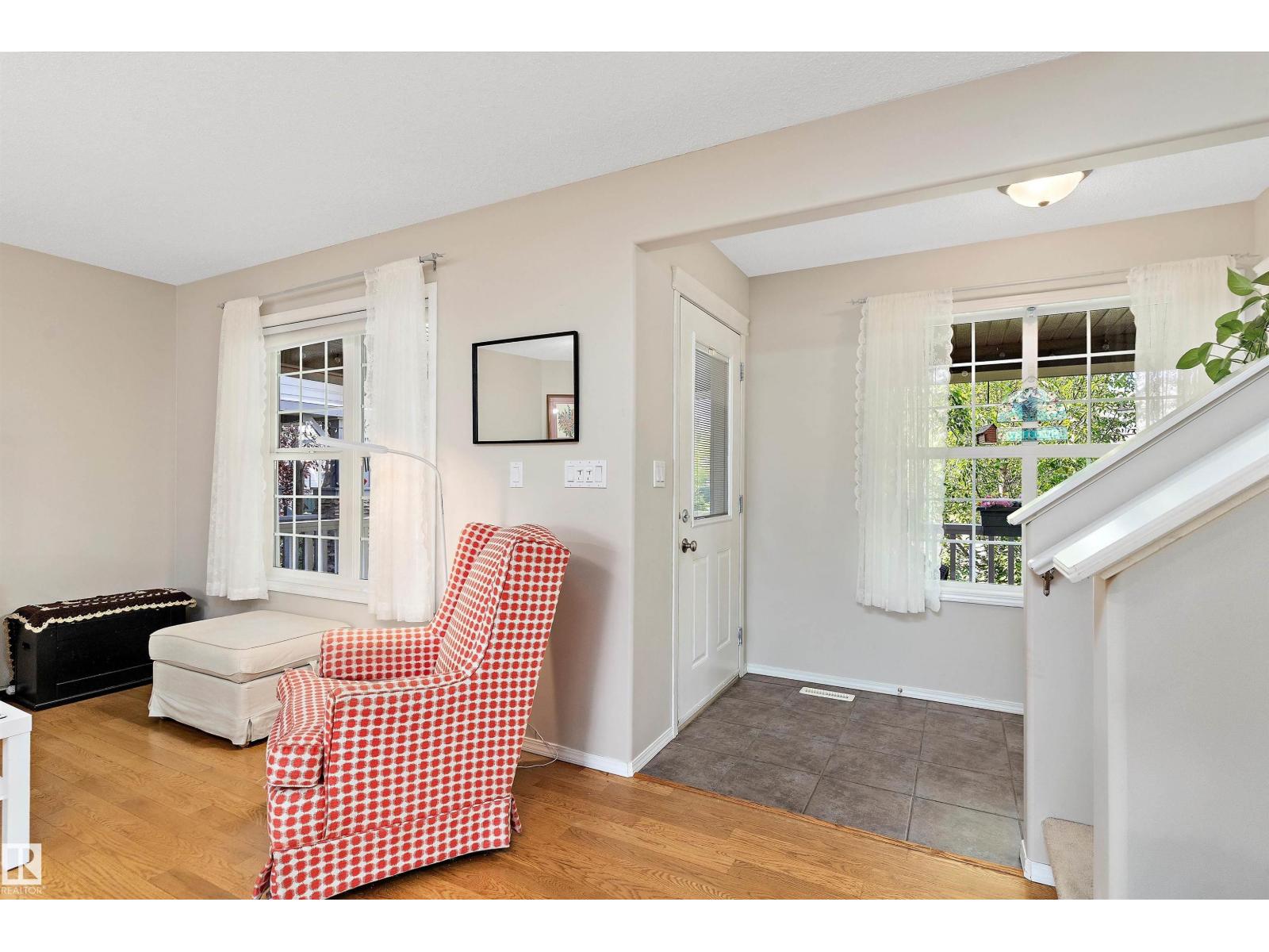 Welcome to cozy Rutherford living in this immaculately maintained two-storey, tucked away on a massive cul-de-sac with lots of parking and backing onto a peaceful greenbelt/park. Families will love the open main floor plan featuring a spacious kitchen with raised eating bar, ceramic tile, and an open plan living room warmed by a corner gas fireplace with roughed-in surround sound. Upstairs, you’ll find three bedrooms and 2.5 baths, creating the perfect layout for family living. Pride of ownership shines with numerous updates including newer shingles, hot water tank, washer/dryer, a beautifully covered front veranda, and a large rear deck just re-stained for years of enjoyment. Whether it’s relaxing on the veranda on warm evenings. Fully finished bsmt has 4th bedroom, family room and 3rd full bath, making this perfect and move in ready! The backyard is a true retreat—fully fenced with a double detached garage; plus pear, lilac, Saskatoon and Nanking cherry bushes to be picked and enjoyed. (id:6365)