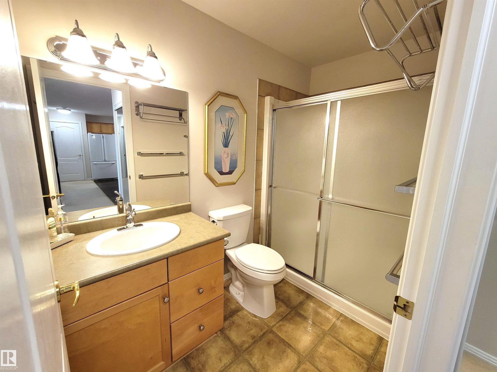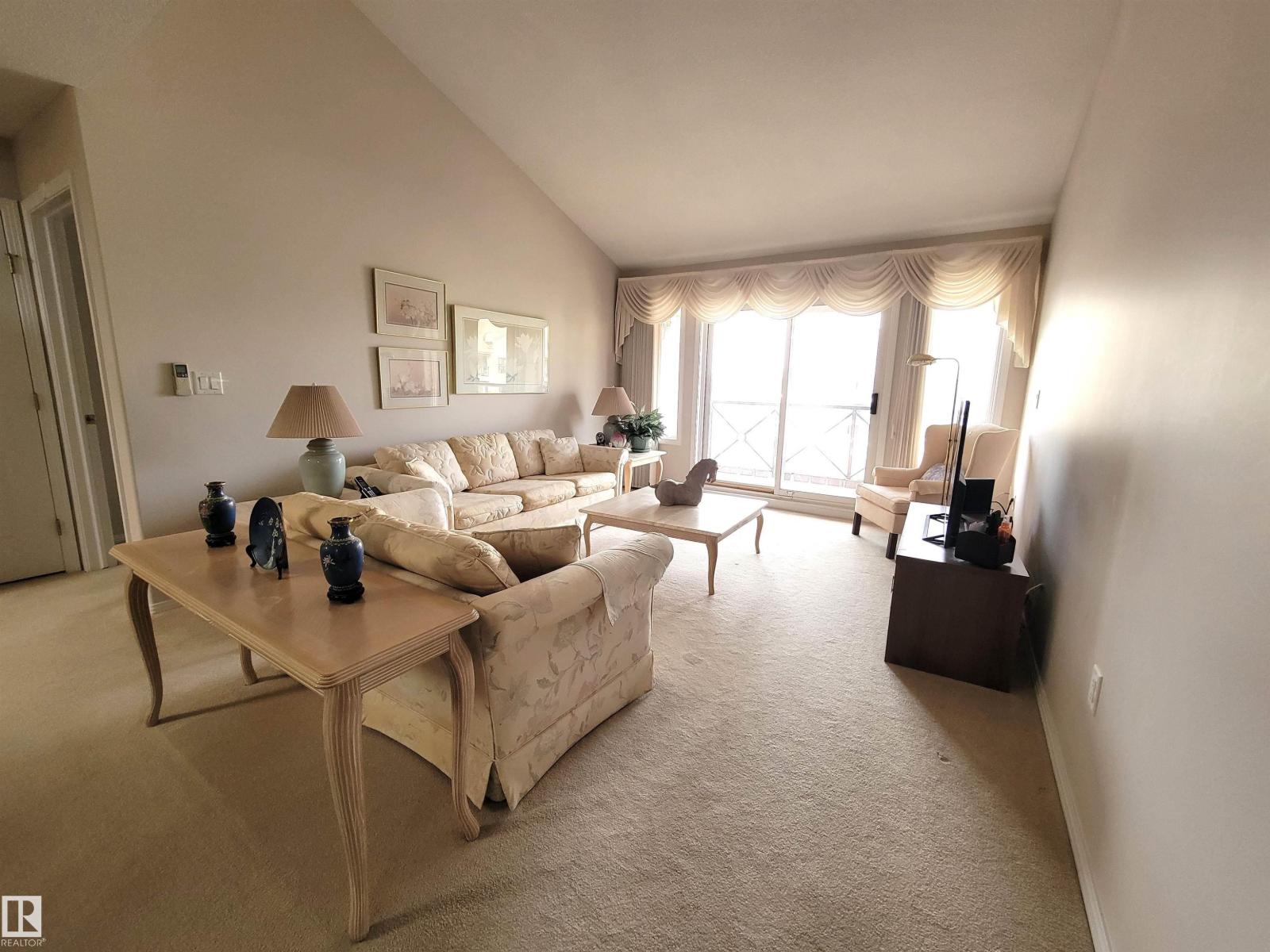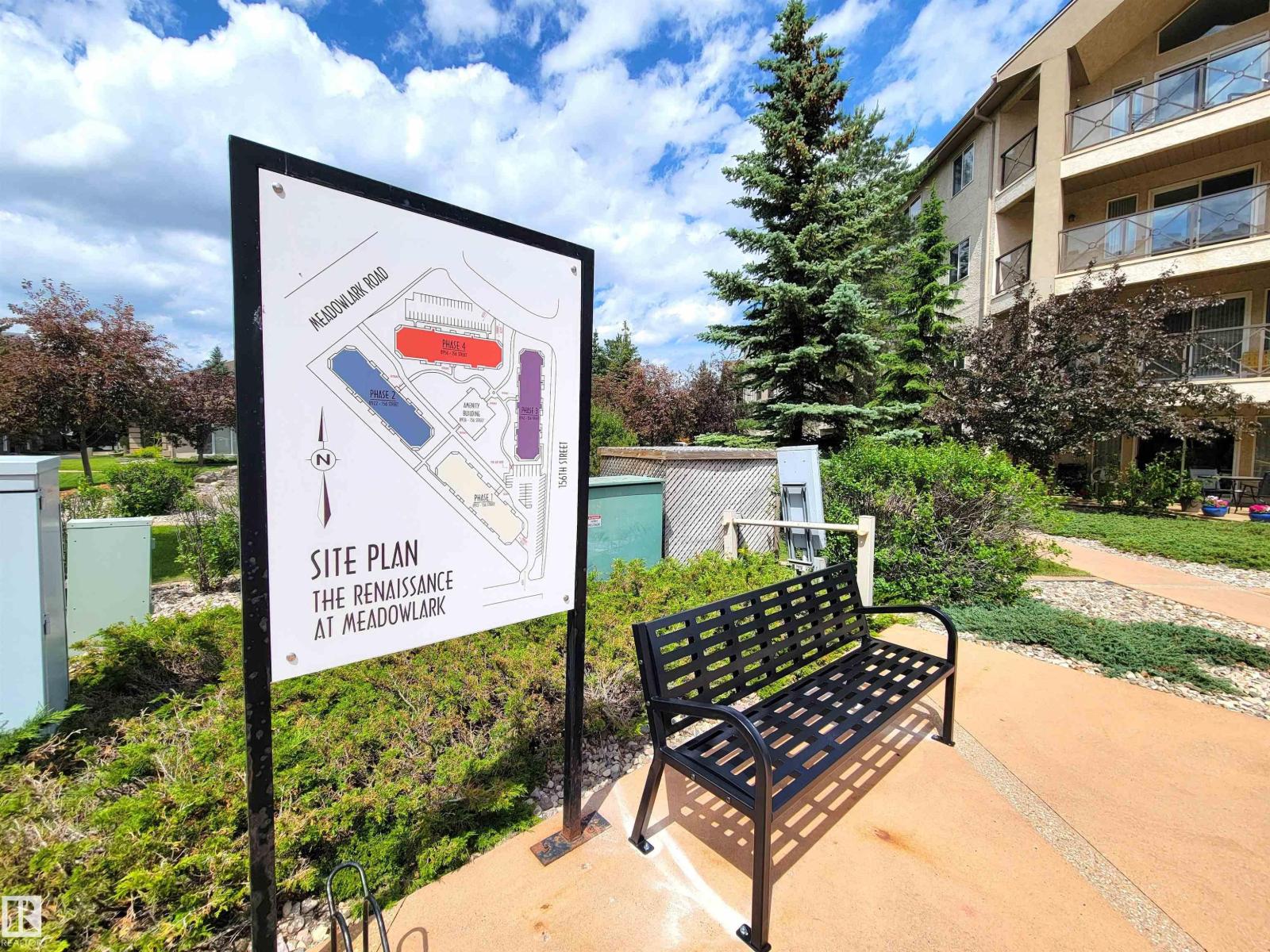 Bright, spacious, and move-in ready! This beautifully maintained top floor 1176sf condo (age 55+) features 2 spacious bedrooms and 2 full bathrooms. The open-concept design includes a generous dining area and a sun-filled living room (with high vaulted ceilings) with access to your private balcony with views to the courtyard. The large primary suite offers a walk-through closet and a 4-piece ensuite, while the second bedroom is conveniently located next to the main bath. Highlights include in-suite stacked washer/dryer, heated titled underground parking with storage cage, and air conditioning. Located in one of the Edmonton’s top-rated adult living communities, just steps from Meadowlark Mall, medical clinics, dining, grocery store and the upcoming LRT—with easy access to a wide range of amenities. Residents can enjoy the recreation centre, exercise room, library, workshop, car wash and guest suite. This is one of the best adult condo complexes in the city—come check it out! (id:6365)