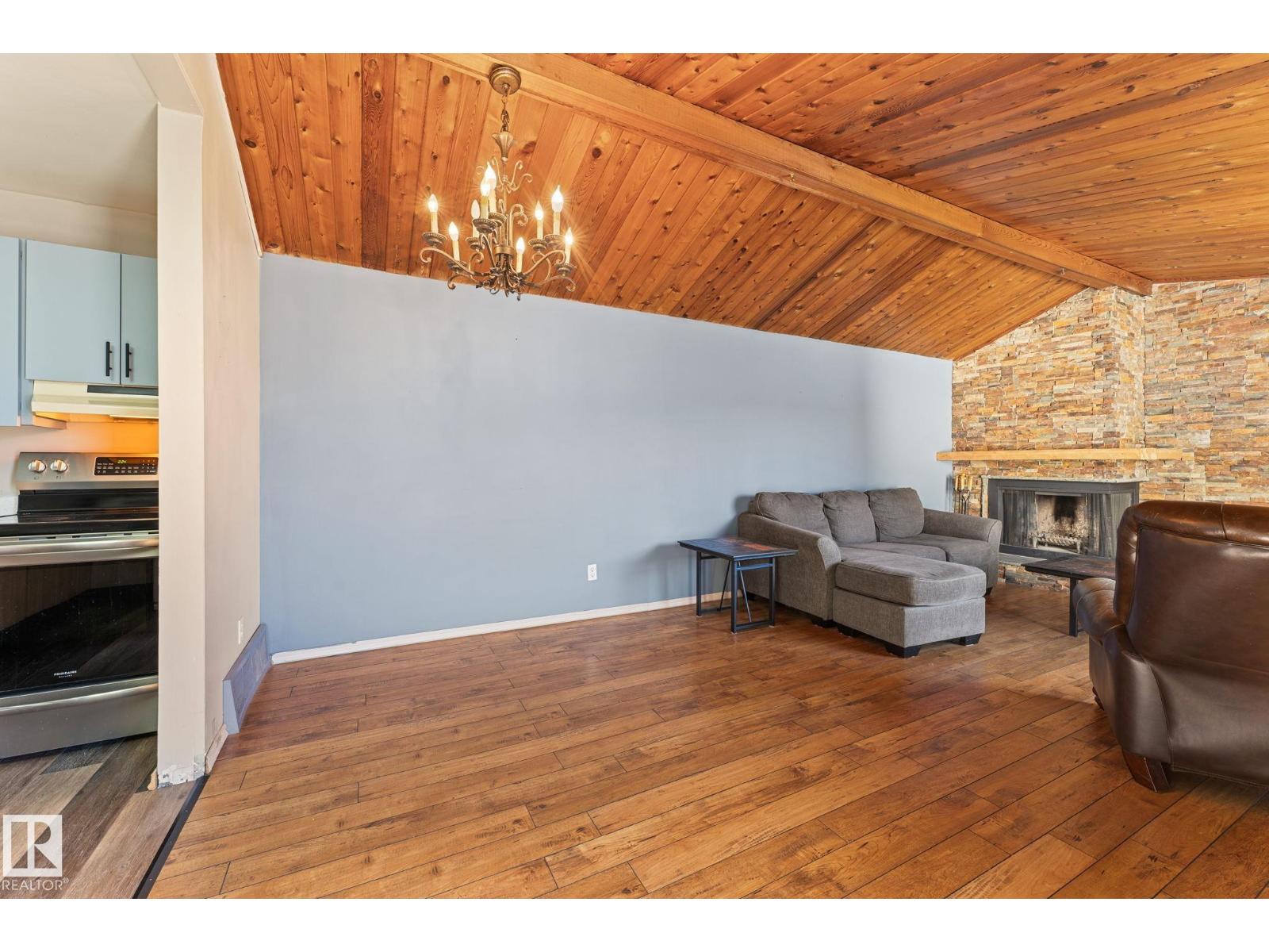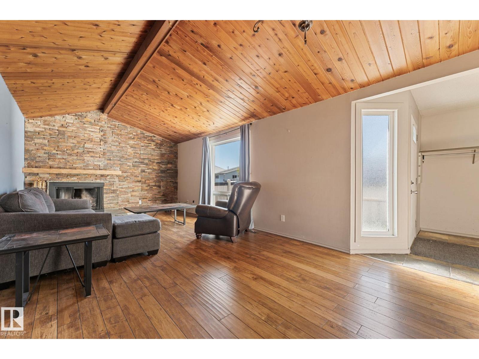 Welcome to this END UNIT bungalow style townhouse in Ormsby! The standout features of this home are the gorgeous vaulted ceilings, beautifully updated laminate flooring paired with a stunning real stone feature wall, creating a warm and cozy atmosphere around your wood burning fireplace. The functional layout includes convenient main-floor laundry, making everyday living easy and practical. The large unfinished basement has one window that makes adding an additional bedroom a great option. You will notice the fully fenced, landscaped and private front yard perfect for pets and kids. Perfectly situated close to schools, shopping, and major roadways, yet tucked away on a quiet street away from heavy traffic. Whether you’re a first-time buyer, downsizing, or looking for an investment property, this home offers comfort and convenience in a desirable location. Don’t miss the opportunity to make this charming townhouse yours! (id:6365)
