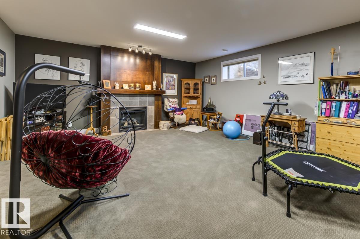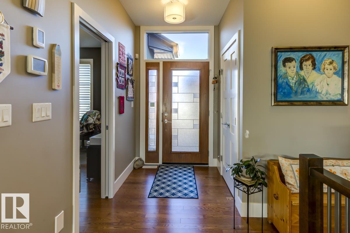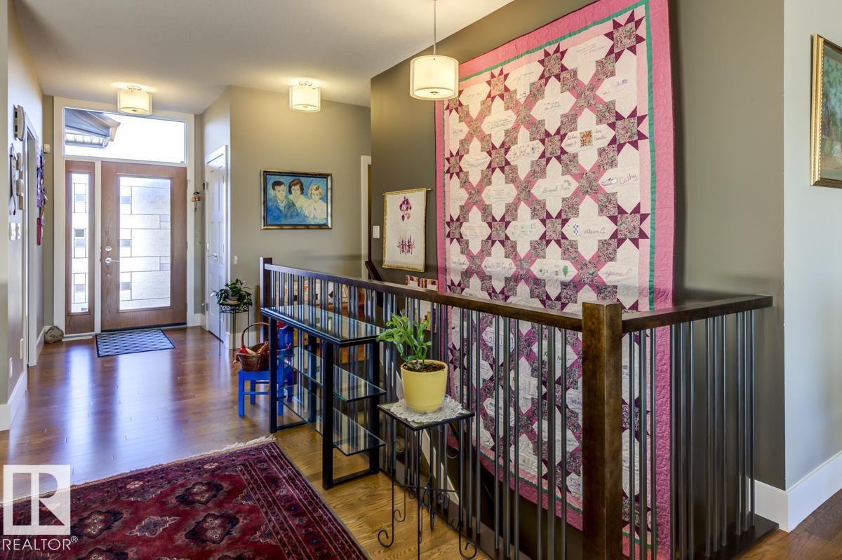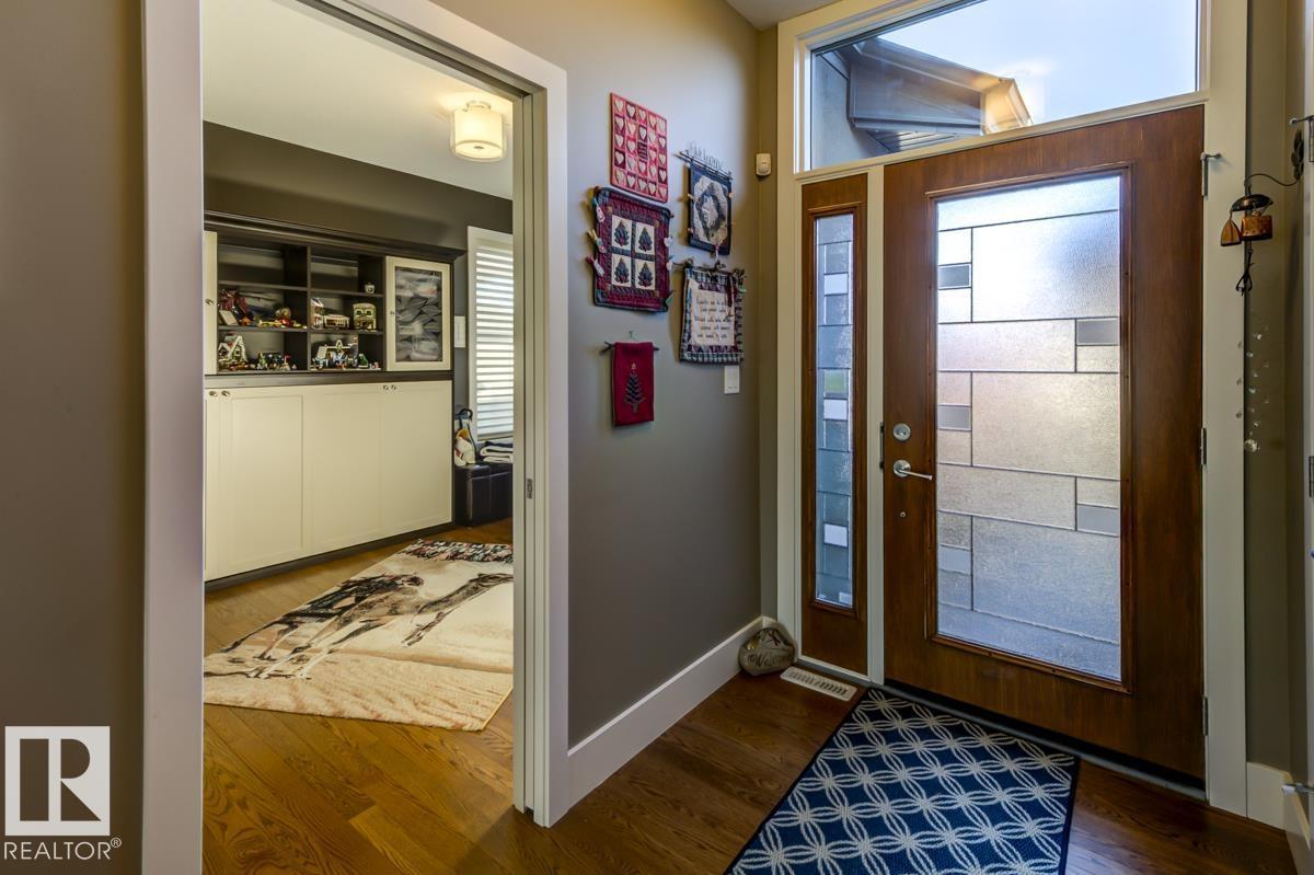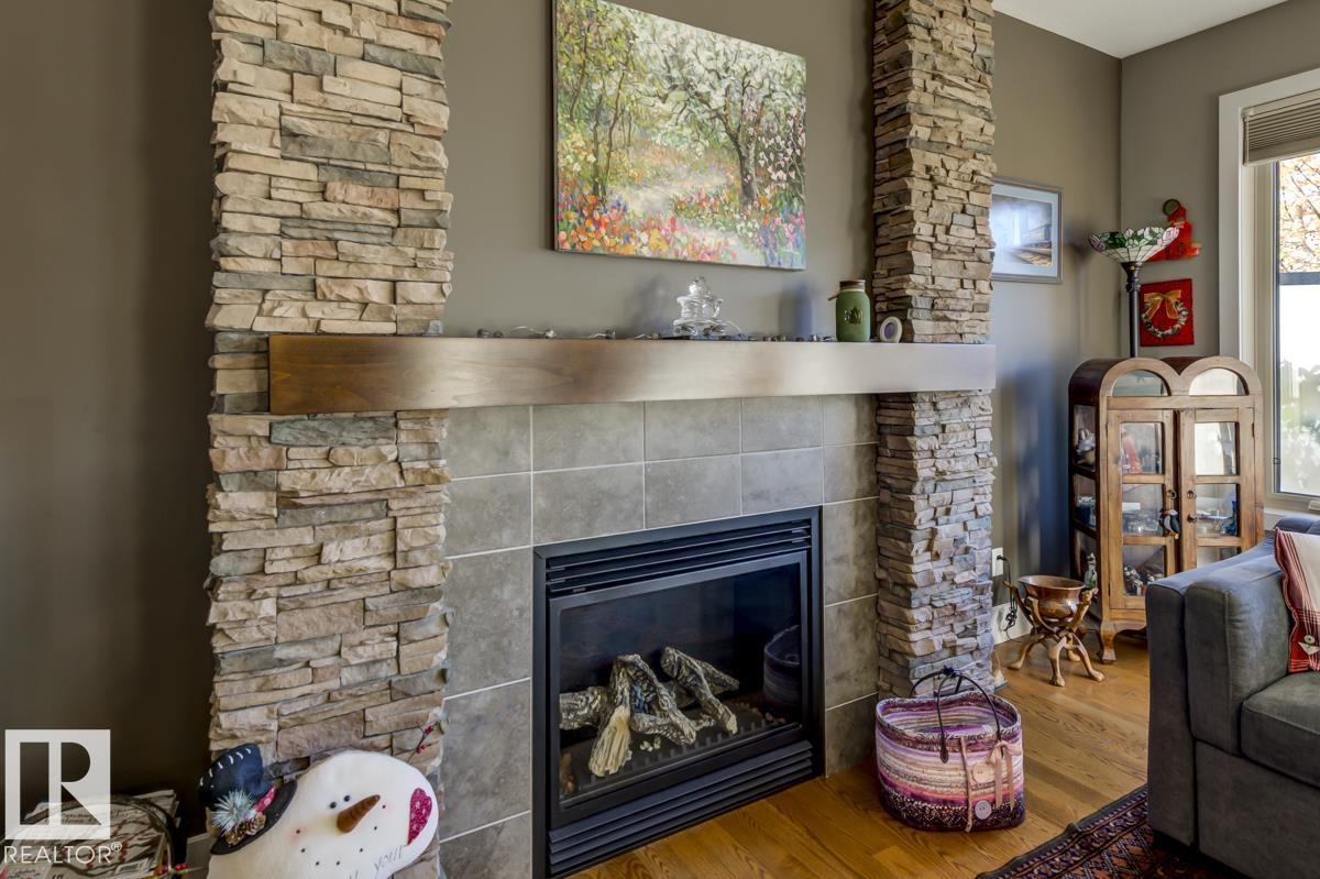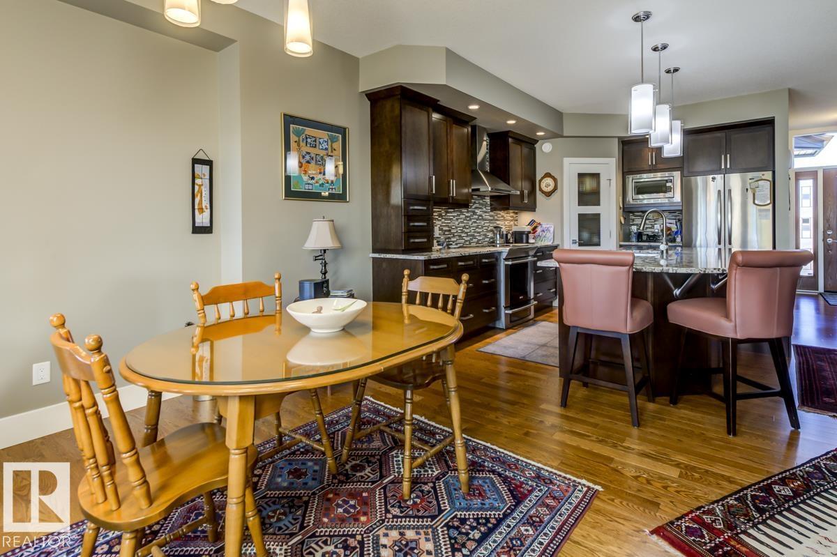 Welcome to this stunning bungalow in the sought-after and prestigious community of Larch Park in Mactaggart, perfectly situated on a quiet cul-de-sac. Thoughtfully designed for comfort and style, this residence features 9-foot ceilings on both levels, a main floor office with a Murphy bed, and a modern kitchen boasting granite counters, stainless steel appliances, pantry, and an oversized island—ideal for entertaining. Enjoy the warmth of gas fireplaces in both the living and rec rooms, or unwind in the west-facing, landscaped backyard with exposed aggregate patio and extendable awning for customizable shade. The primary suite offers a spa-like 5-piece ensuite and walk-in closet, while the fully finished basement impresses with an oversized rec room with wet bar, two generous bedrooms, and ample storage. Additional highlights include main floor laundry, a double attached garage with extra depth, and Green Built certification for energy efficiency. With no condo fees, no shovelling, and no lawn care. (id:6365)