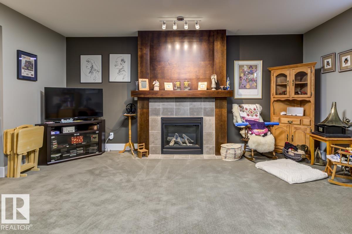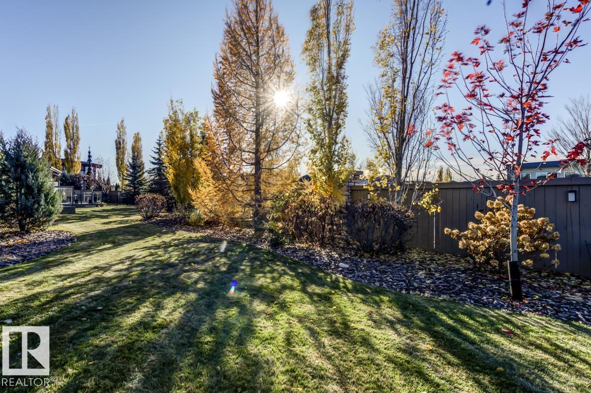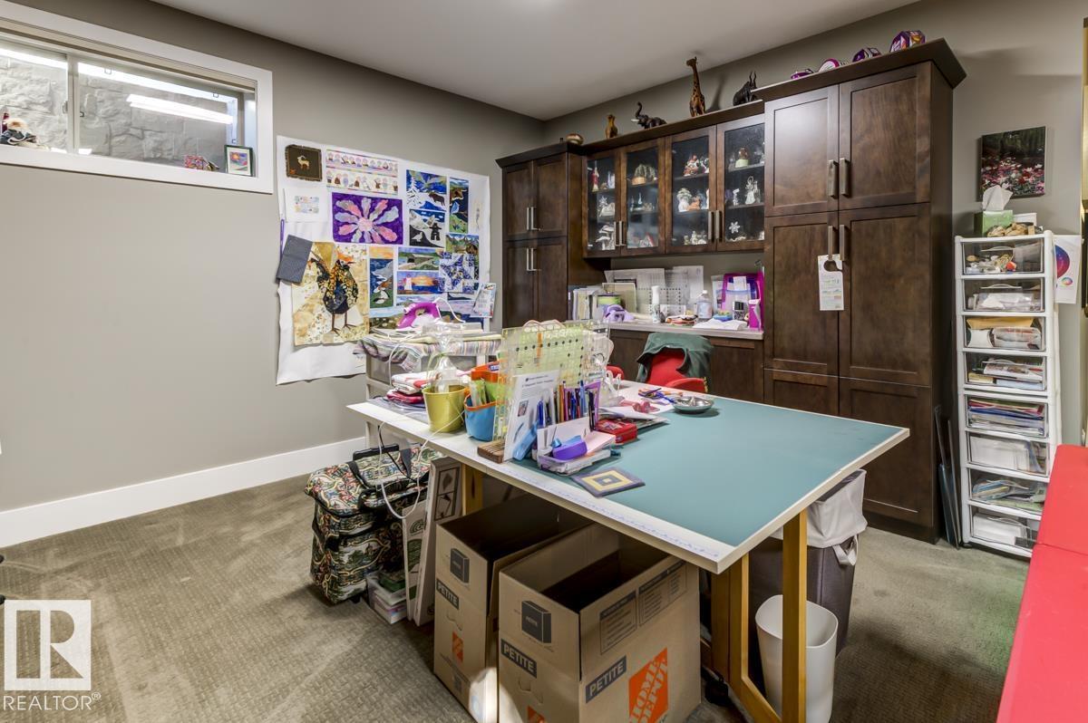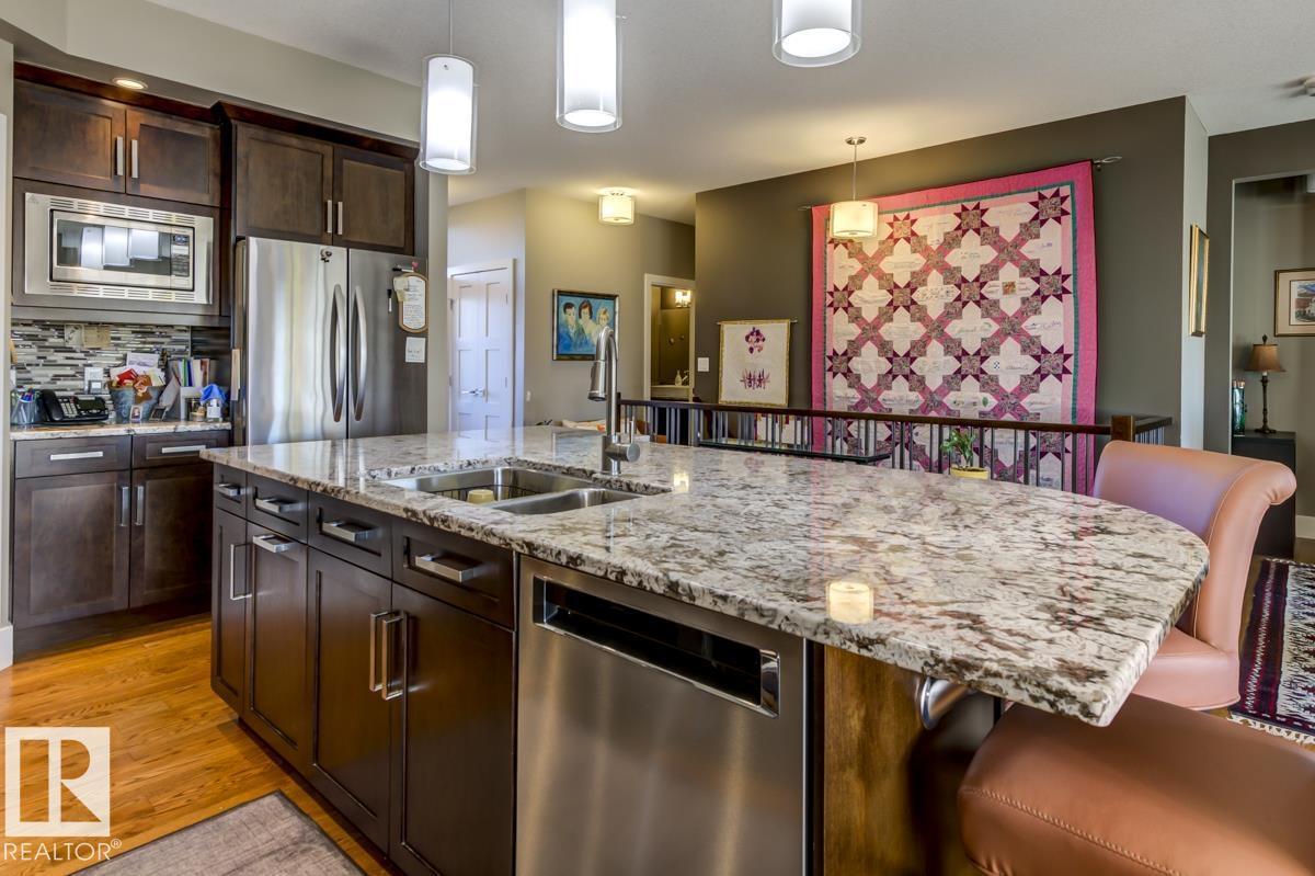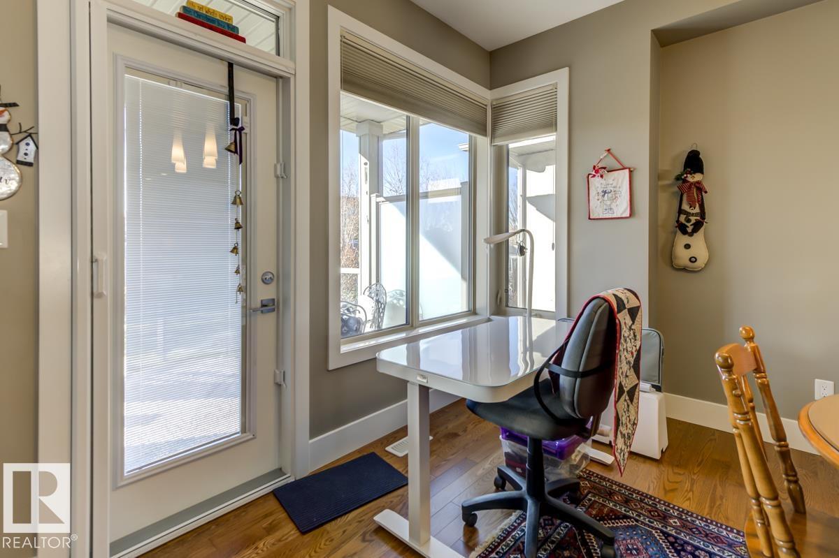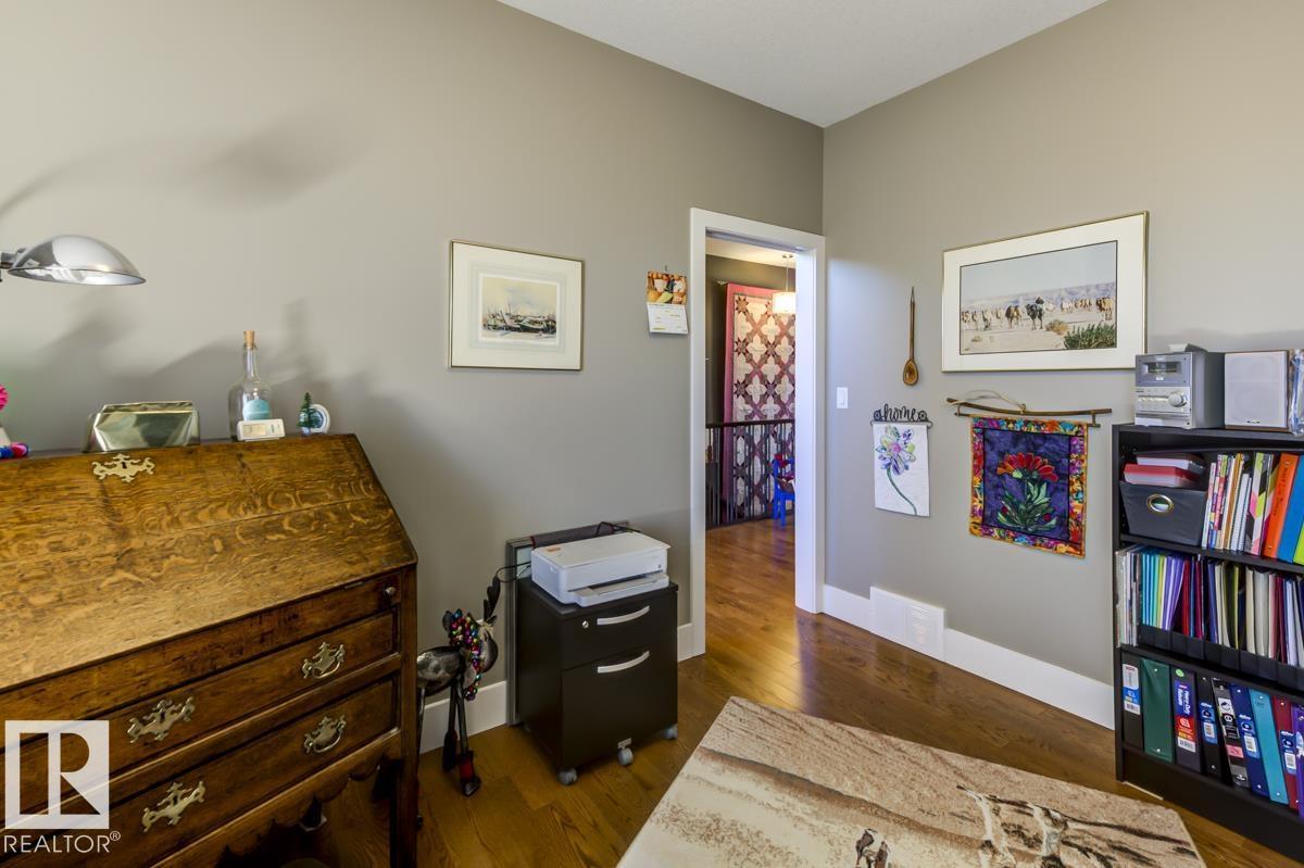 Welcome to this stunning bungalow in the sought-after and prestigious community of Larch Park in Mactaggart, perfectly situated on a quiet cul-de-sac. Thoughtfully designed for comfort and style, this residence features 9-foot ceilings on both levels, a main floor office with a Murphy bed, and a modern kitchen boasting granite counters, stainless steel appliances, pantry, and an oversized island—ideal for entertaining. Enjoy the warmth of gas fireplaces in both the living and rec rooms, or unwind in the west-facing, landscaped backyard with exposed aggregate patio and extendable awning for customizable shade. The primary suite offers a spa-like 5-piece ensuite and walk-in closet, while the fully finished basement impresses with an oversized rec room with wet bar, two generous bedrooms, and ample storage. Additional highlights include main floor laundry, a double attached garage with extra depth, and Green Built certification for energy efficiency. With no condo fees, no shovelling, and no lawn care. (id:6365)