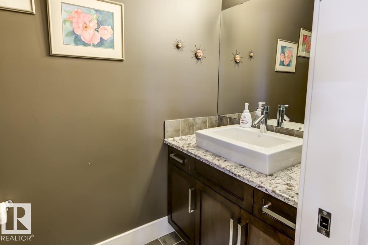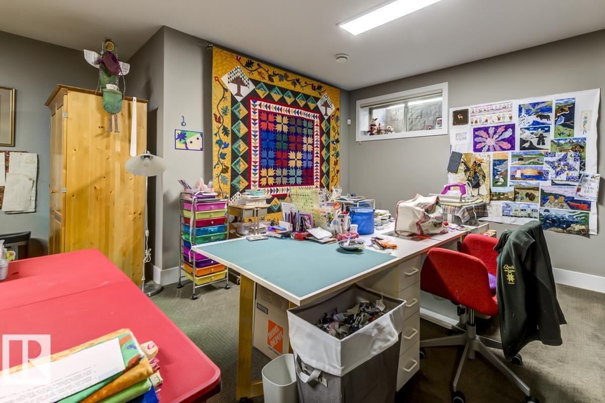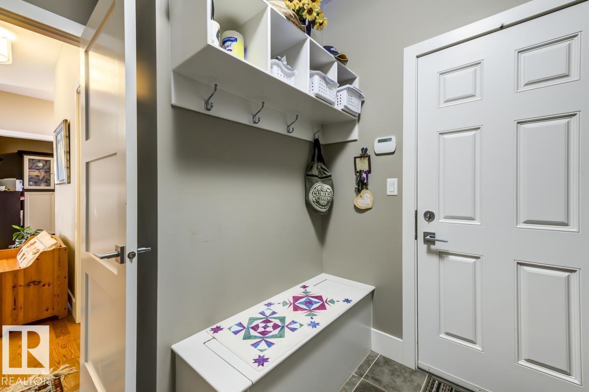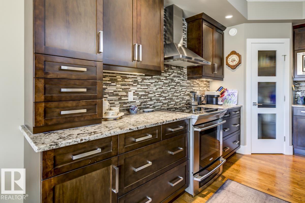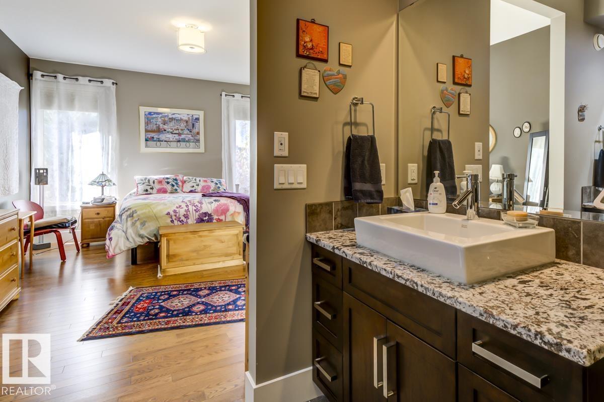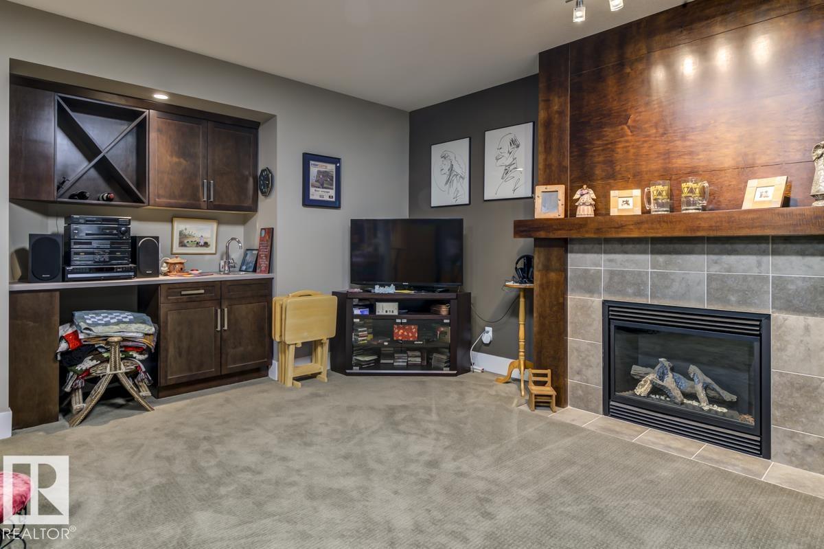 Welcome to this stunning bungalow in the sought-after and prestigious community of Larch Park in Mactaggart, perfectly situated on a quiet cul-de-sac. Thoughtfully designed for comfort and style, this residence features 9-foot ceilings on both levels, a main floor office with a Murphy bed, and a modern kitchen boasting granite counters, stainless steel appliances, pantry, and an oversized island—ideal for entertaining. Enjoy the warmth of gas fireplaces in both the living and rec rooms, or unwind in the west-facing, landscaped backyard with exposed aggregate patio and extendable awning for customizable shade. The primary suite offers a spa-like 5-piece ensuite and walk-in closet, while the fully finished basement impresses with an oversized rec room with wet bar, two generous bedrooms, and ample storage. Additional highlights include main floor laundry, a double attached garage with extra depth, and Green Built certification for energy efficiency. With no condo fees, no shovelling, and no lawn care. (id:6365)