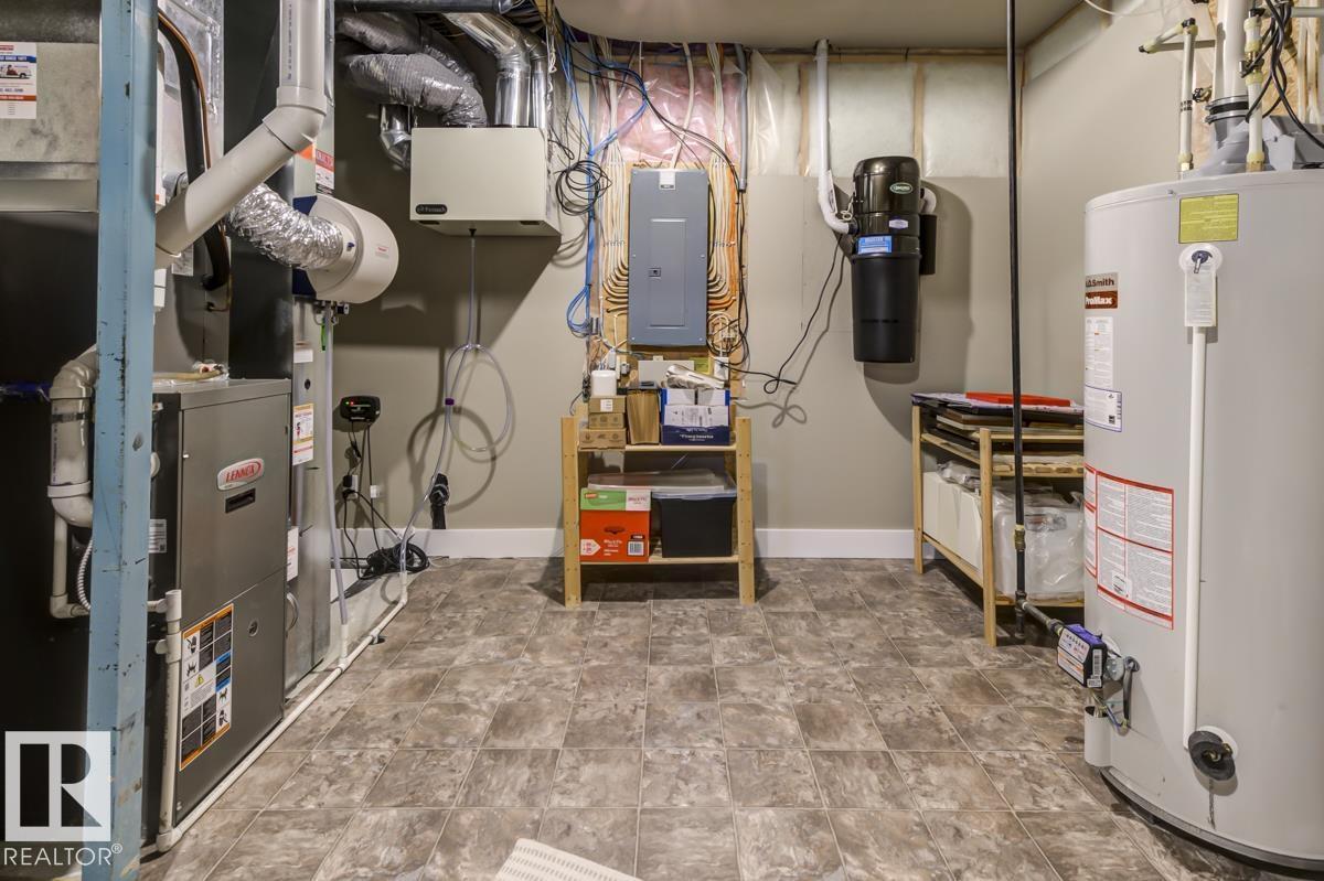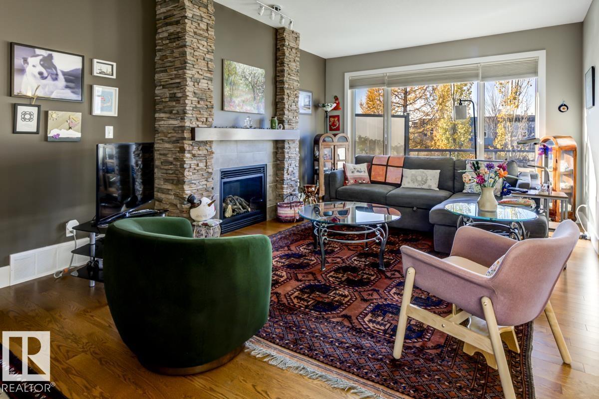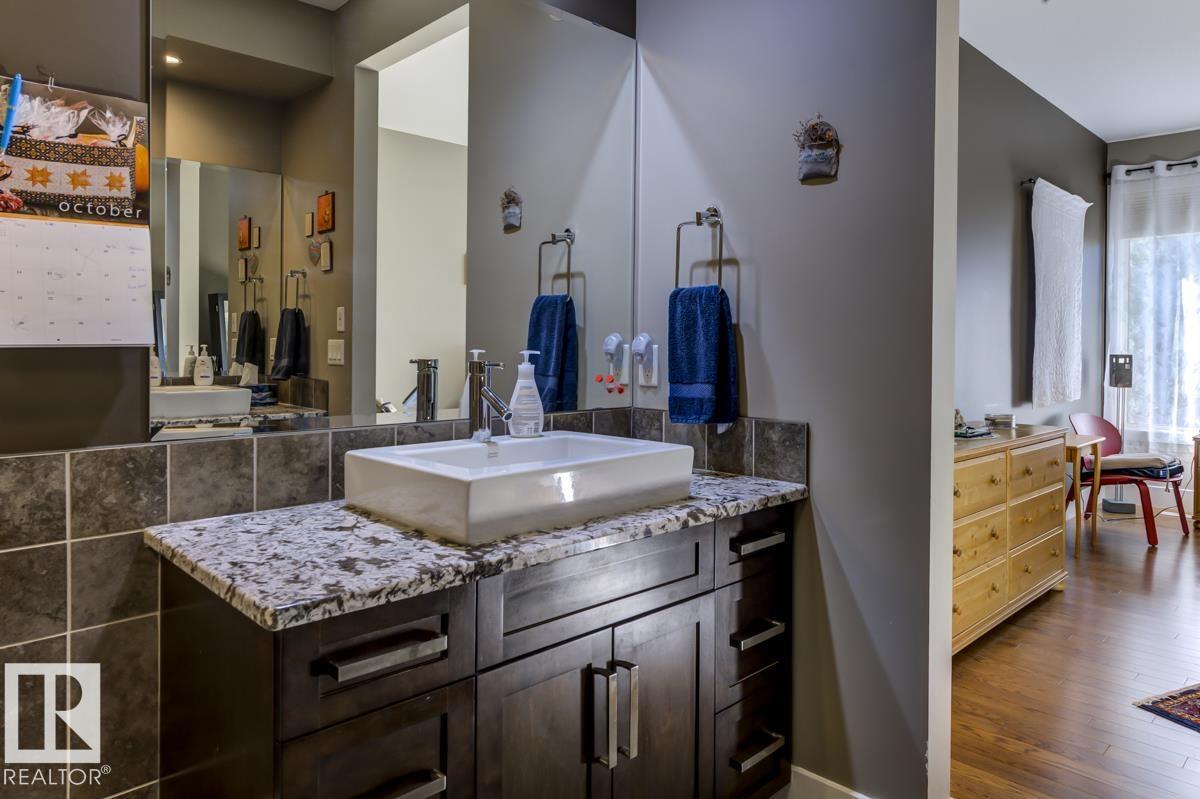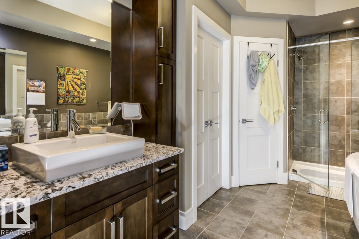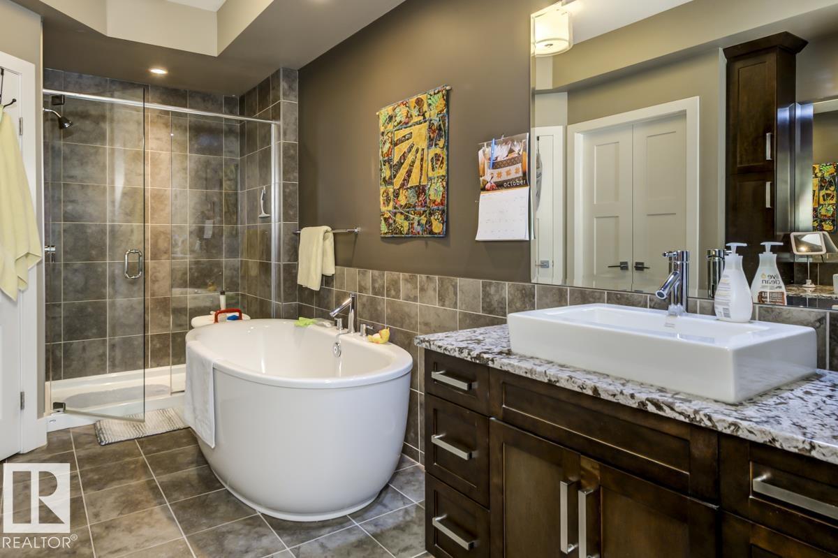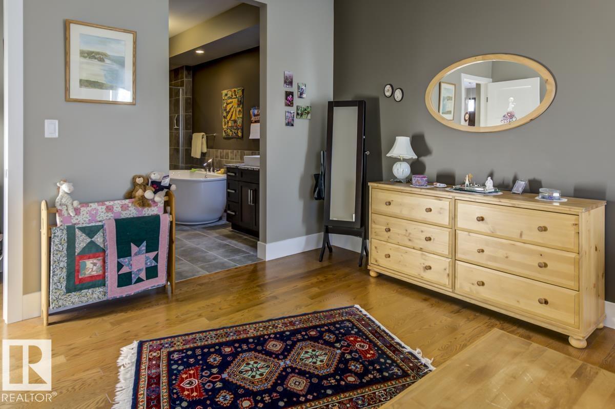 Welcome to this stunning bungalow in the sought-after and prestigious community of Larch Park in Mactaggart, perfectly situated on a quiet cul-de-sac. Thoughtfully designed for comfort and style, this residence features 9-foot ceilings on both levels, a main floor office with a Murphy bed, and a modern kitchen boasting granite counters, stainless steel appliances, pantry, and an oversized island—ideal for entertaining. Enjoy the warmth of gas fireplaces in both the living and rec rooms, or unwind in the west-facing, landscaped backyard with exposed aggregate patio and extendable awning for customizable shade. The primary suite offers a spa-like 5-piece ensuite and walk-in closet, while the fully finished basement impresses with an oversized rec room with wet bar, two generous bedrooms, and ample storage. Additional highlights include main floor laundry, a double attached garage with extra depth, and Green Built certification for energy efficiency. With no condo fees, no shovelling, and no lawn care. (id:6365)