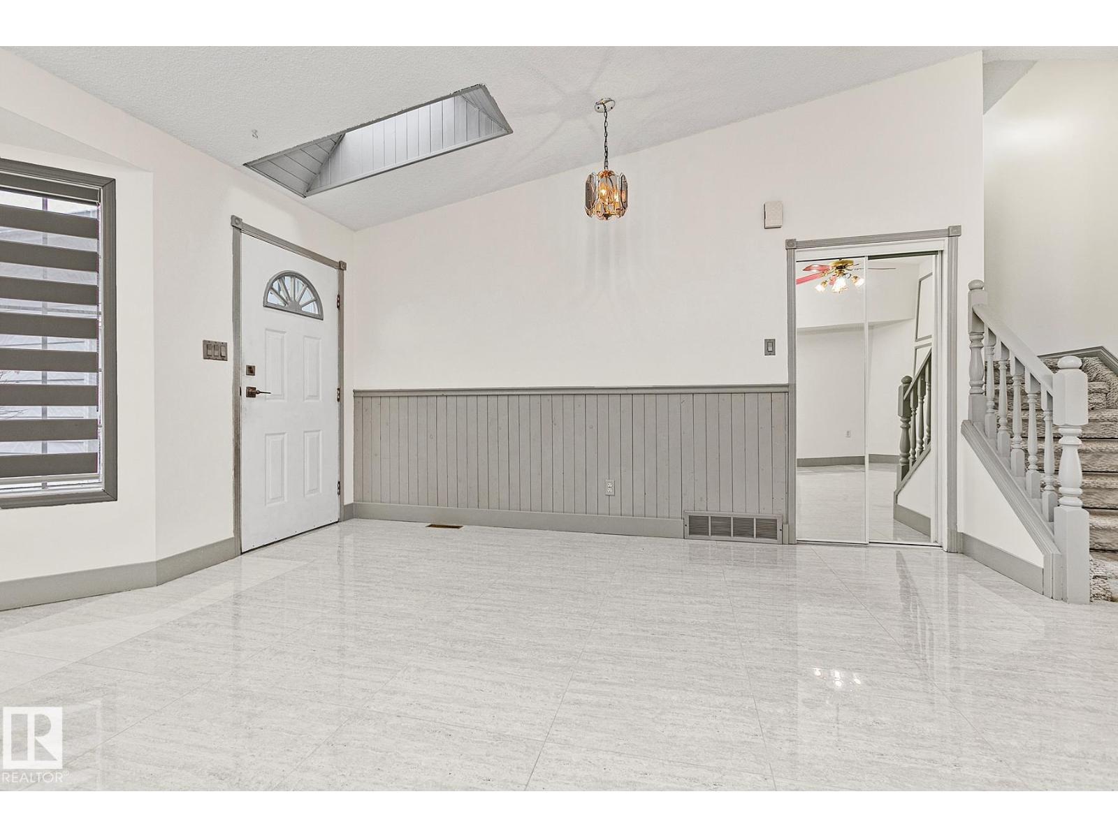 Upgraded SPLIT LEVEL along a QUIET street in Kirkness. The attached DOUBLE GARAGE & BAY WINDOW in the living room add to exterior curb appeal. Inside you are welcomed to a SKYLIGHT bringing in NATURAL LIGHT; a FRESH MOTIF w/ NEW PAINT, 24x 24 inch TILE w/ grey accents against a white palate welcomes you in. Entertain in the SPACIOUS living room w/ a dining room attached. Around the corner is a U- SHAPED kitchen featuring new QUARTZ counters, MODERN back splash tile, NEW sink & faucet; the EAT IN NOOK has PATIO DOORS leading to the deck & large FULLY FENCED yard to play in. Upper floor has 4 piece bath w/ TILED floor, NEW QUARTZ counters, sink & faucet. 3 bedrooms are FAMILY FRIENDLY. 3rd floor has a SIZEABLE family room, a full bath featuring new tub surround with 24x24 tile & an ample bedroom/den. Basement is partially finished & has some minor finishing left to make it complete. UPGRADED high efficiency furnace & chilly CENTRAL A/C, laundry room is around the corner, see it now! You will LOVE it! (id:6365)